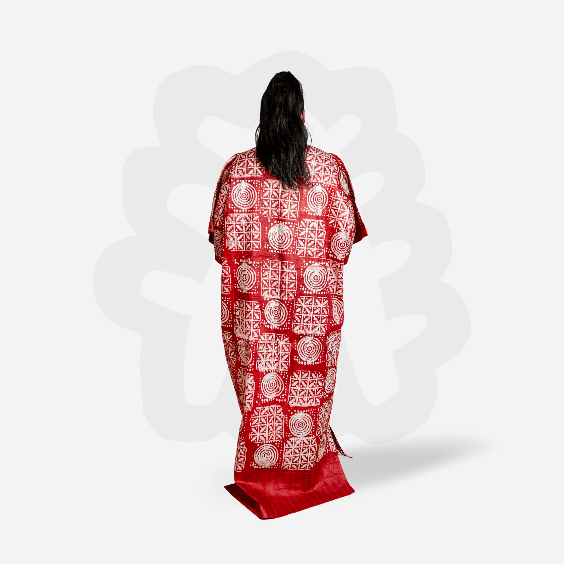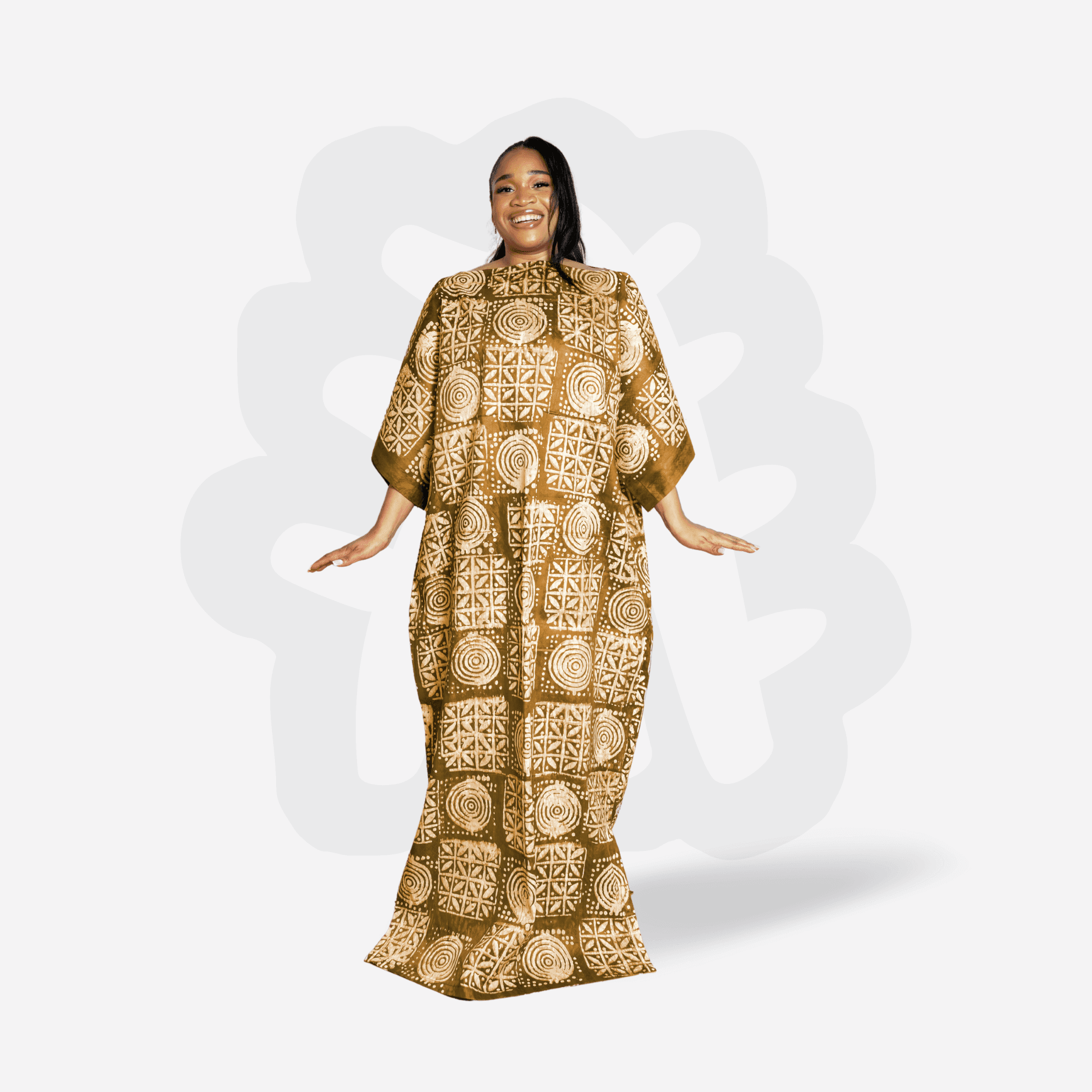 Adire Bubu with White Symbolic Motifs – Handmade Kaftan Dress
