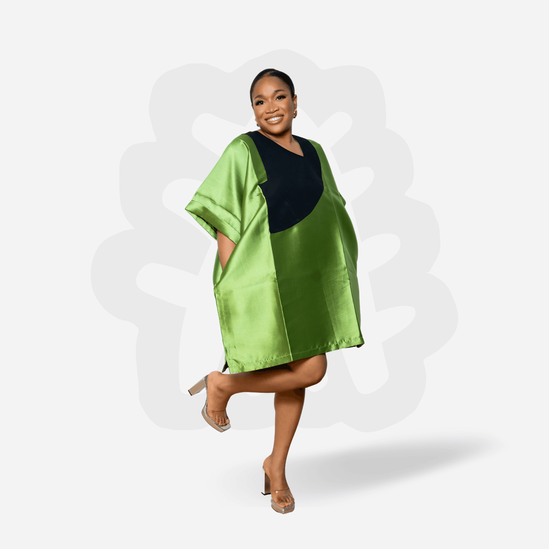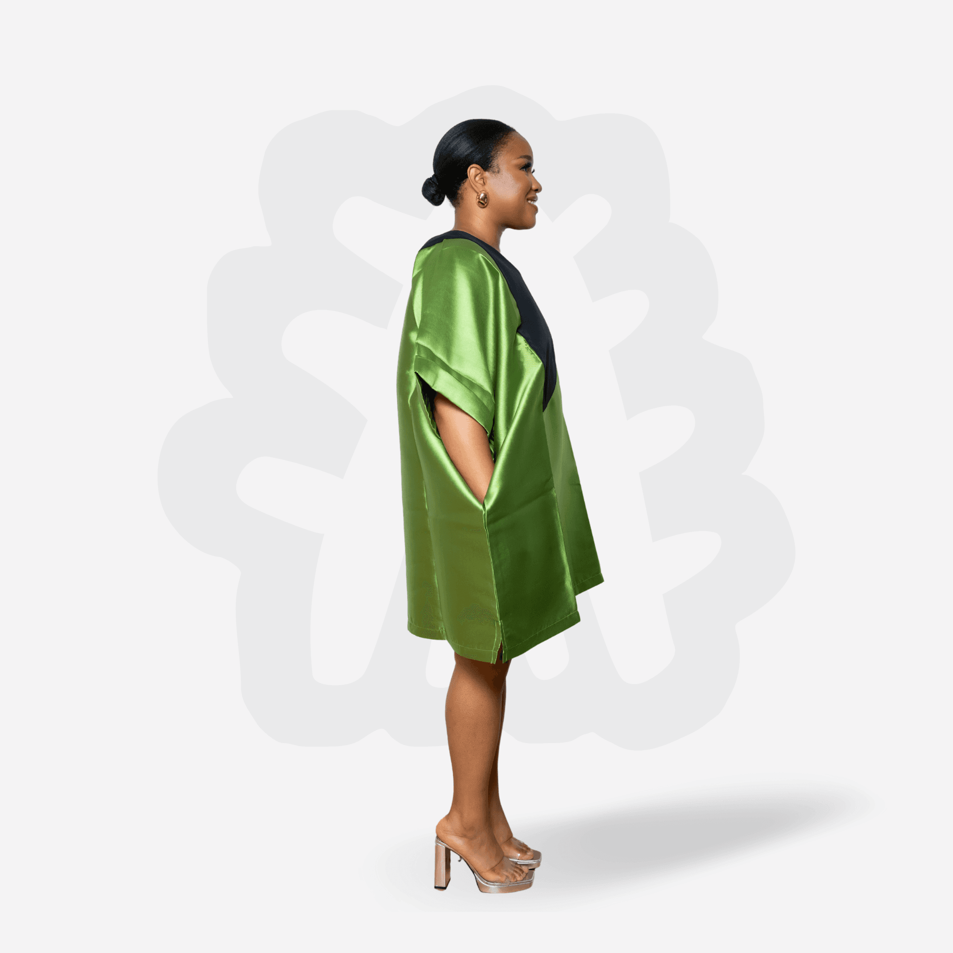 Elevate your everyday elegance with the Mikado Shorty Bubu – a radiant expression of confidence and comfort. Crafted from lustrous mikado satin, this piece features a structured A-line cut in glowing copper and pistachio green, accented by a bold black crescent bib, creating the perfect blend of modern edge.