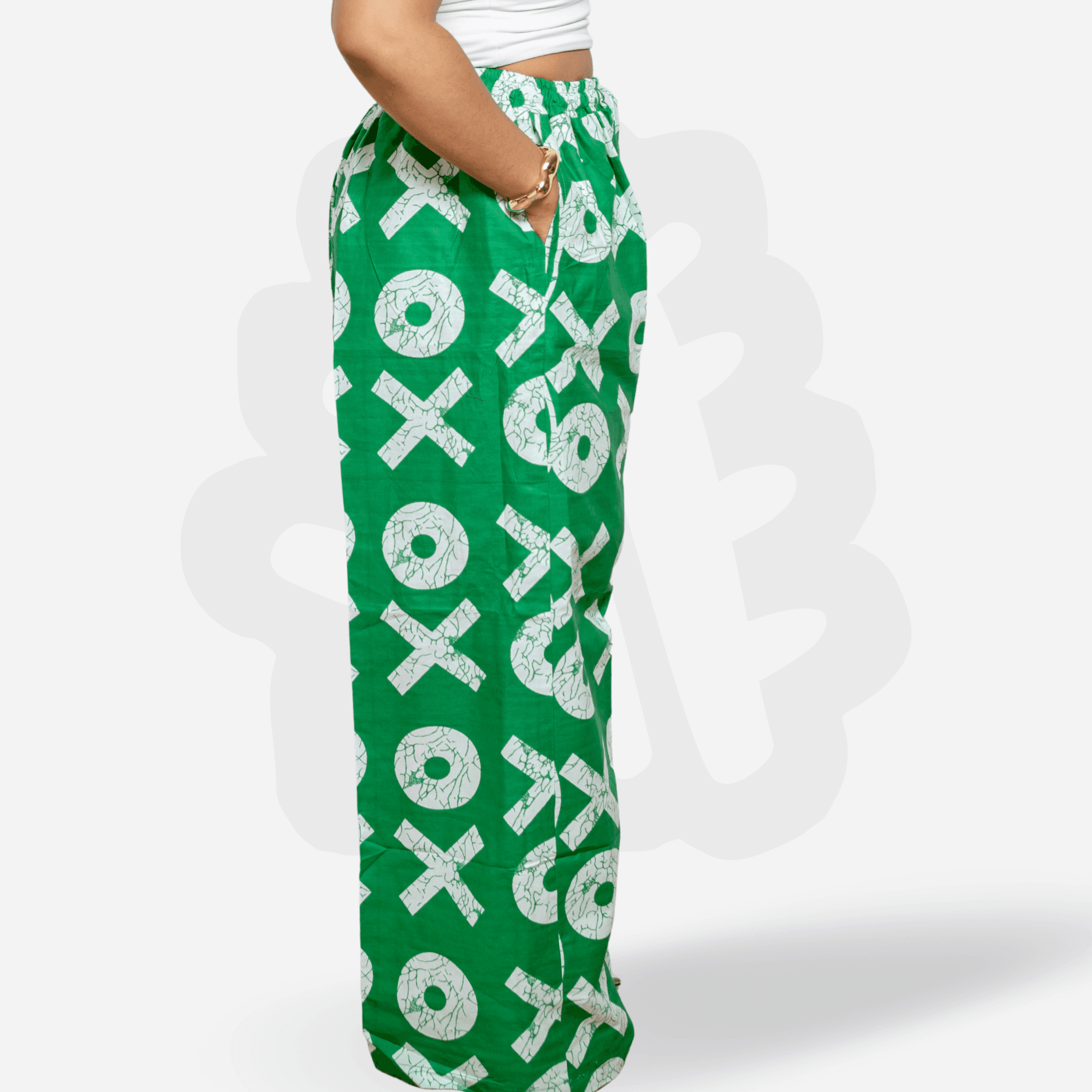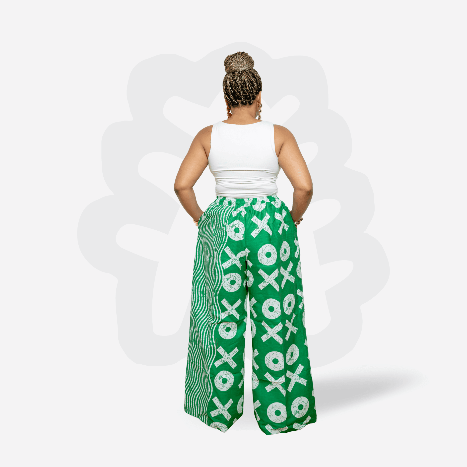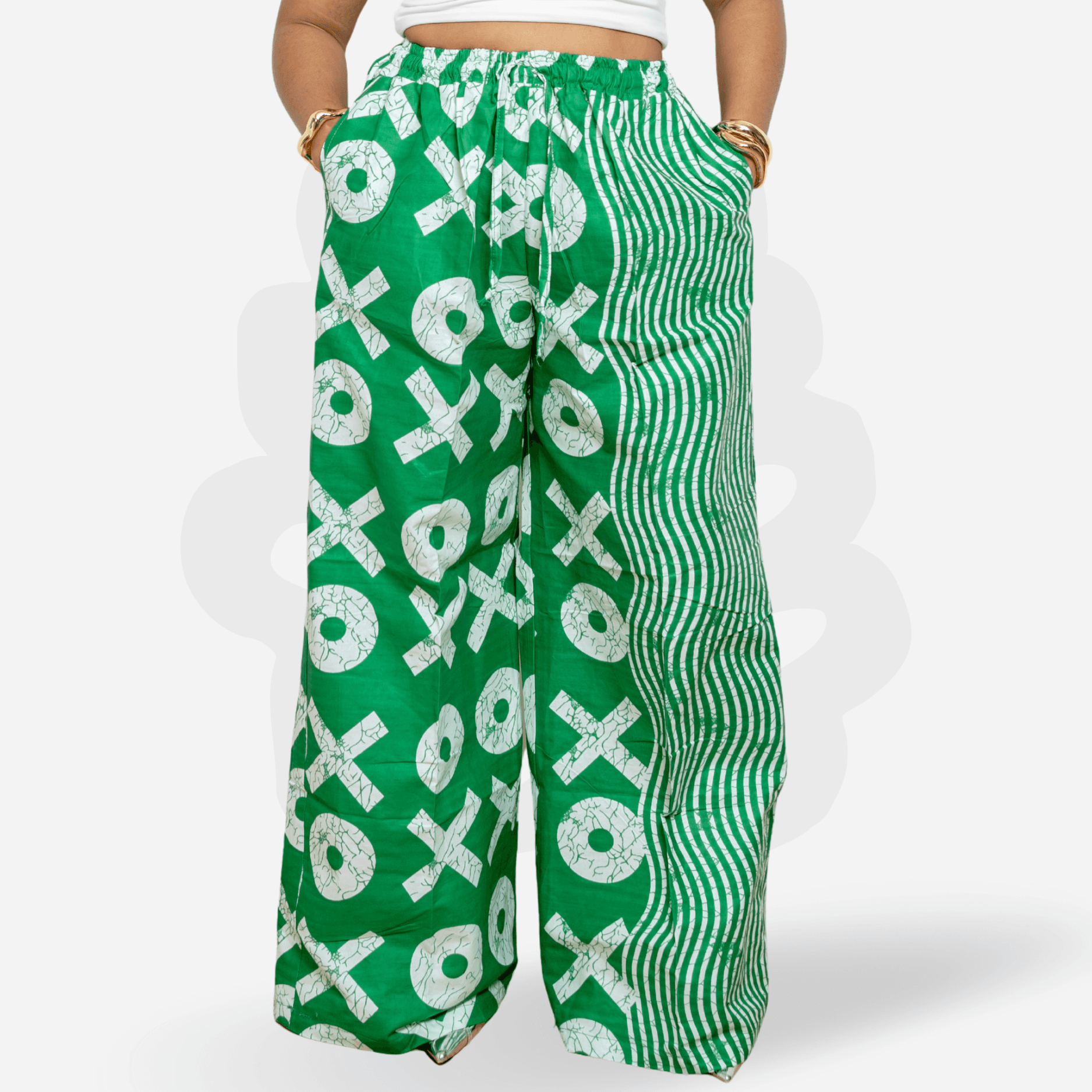 Elevate your wardrobe with the Traba Ankara Palazzo Trousers, a bold fusion of cultural heritage and modern flair. Designed for comfort and confidence, these wide-leg trousers feature a stunning mix of traditional Adire-inspired XOXO and stripe patterns in rich indigo blue.